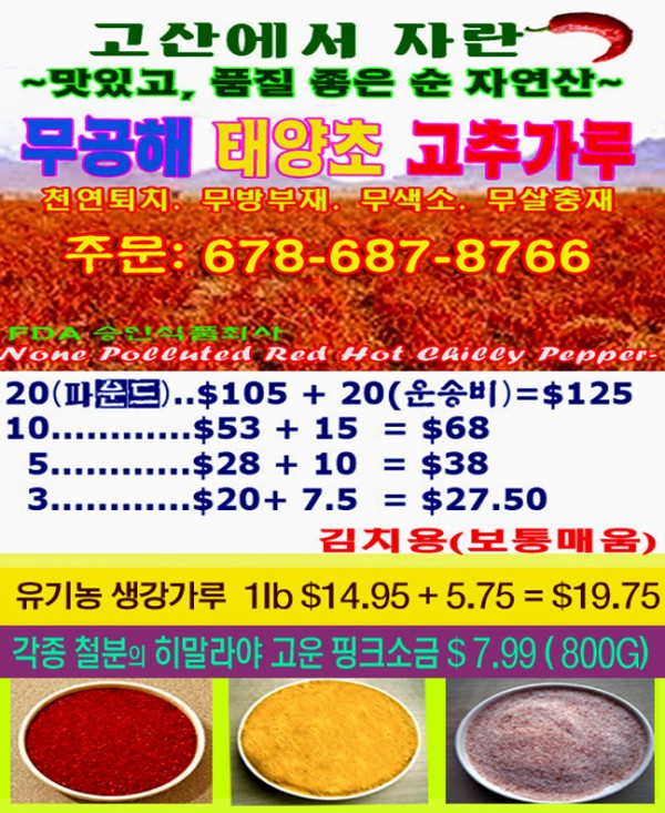 1400m 멕시코 고산에서 자란, 맛있고 건강에 좋은 무공해 태양초 고추가루! 작성자 정보 riverflow 작성 작성일 2025.07.27 05:18 컨텐츠 정보 434 조회 목록 본문 1400m 멕시코 고산에서 자란, 맛있고 건강에 좋은 무공해 태양초 고추가루! 관련자료 이전 RM 캐비넷 & 디자인 작성일 2025.08.05 23:49 다음 담배 해외배송쇼핑몰 [타바코]입니다. 작성일 2025.05.20 16:21 댓글 0 등록된 댓글이 없습니다. 로그인한 회원만 댓글 등록이 가능합니다. 목록